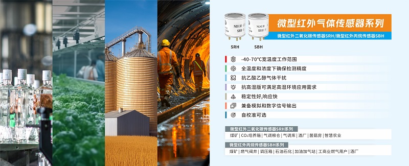 四方光電微型紅外二氧化碳傳感器SRH系列和微型紅外丙烷傳感器SBH系列均采用NDIR技術(shù),與熱催化和半導(dǎo)體技術(shù)相比不易受有害氣體影響,具有選擇性強(qiáng)、精度高、壽命長(zhǎng)的優(yōu)勢(shì)??梢栽谌珳囟群蜐舛认麓_保檢測(cè)精度,響應(yīng)快,穩(wěn)定性好,能夠在曲房和發(fā)酵池復(fù)雜環(huán)境中應(yīng)用,滿足白酒釀造過程中對(duì)于CO2濃度和乙醇揮發(fā)濃度監(jiān)測(cè)的需求。