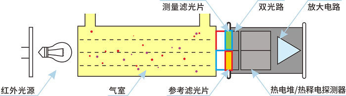 臨床上最常用的ETCO2監(jiān)測(cè)方法是非分光紅外技術(shù)(NDIR),基于CO2分子在紅外光譜4. 26μm波長(zhǎng)處有一個(gè)特征吸收峰,在此特定波長(zhǎng)下,根據(jù)所吸收CO2光強(qiáng)的大小、紅外吸收光譜進(jìn)行計(jì)算,即確認(rèn)當(dāng)前CO2的濃度,并根據(jù)波形的特征檢測(cè)來進(jìn)一步計(jì)算呼吸率、吸入和呼出CO2濃度。