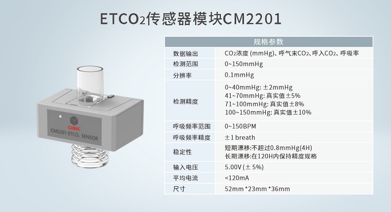 在醫(yī)學(xué)臨床監(jiān)測(cè)中,呼氣末二氧化碳(ETCO2)是一項(xiàng)十分重要的生理參數(shù),可以反映病人的代謝、通氣和循環(huán)狀態(tài),被認(rèn)為是除體溫、呼吸、脈搏、血壓、動(dòng)脈血氧飽和度以外的第六個(gè)基本生命體征。2017年,國(guó)內(nèi)急診/重癥相關(guān)專家小組制定了《急診呼氣末二氧化碳監(jiān)測(cè)專家共識(shí)》,總結(jié)了ETCO2監(jiān)測(cè)在氣道定位、呼吸監(jiān)測(cè)、循環(huán)監(jiān)測(cè)、輔助診斷和病情評(píng)估5個(gè)方面的臨床應(yīng)用,具體可以監(jiān)測(cè)患者呼吸功能、幫助評(píng)估人工通氣和心肺復(fù)蘇效果和輔助進(jìn)行麻醉管理等。相較血氧飽和度指標(biāo),呼氣末二氧化碳的反應(yīng)更加迅速,且安全無創(chuàng),國(guó)內(nèi)各大醫(yī)院的手術(shù)室、ICU、麻醉等科室為了方便患者的日常檢查和病情診斷已經(jīng)把ETCO2監(jiān)測(cè)列為日常監(jiān)護(hù)項(xiàng)目,也是ASA、EUSA各國(guó)麻醉診療常規(guī)監(jiān)測(cè)指標(biāo)。
