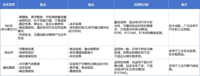 R290冷媒泄漏監(jiān)測(cè)技術(shù)眾多,對(duì)比電化學(xué)、催化燃燒傳感器技術(shù),NDIR具備長期穩(wěn)定性好、信噪比高,選擇性好,不易中毒老化、響應(yīng)速度快、壽命長等特點(diǎn),在2022年8月美國AHR的報(bào)告中顯示,NDIR是唯一通過各項(xiàng)測(cè)試驗(yàn)證的技術(shù)方案。因此基于NDIR技術(shù)的冷媒泄漏監(jiān)測(cè)傳感器滿足汽車?yán)涿叫孤┍O(jiān)測(cè)的高安全性、高可靠性和實(shí)時(shí)性要求,被認(rèn)為是電動(dòng)汽車?yán)涿叫孤┍O(jiān)測(cè)領(lǐng)域推薦技術(shù)。