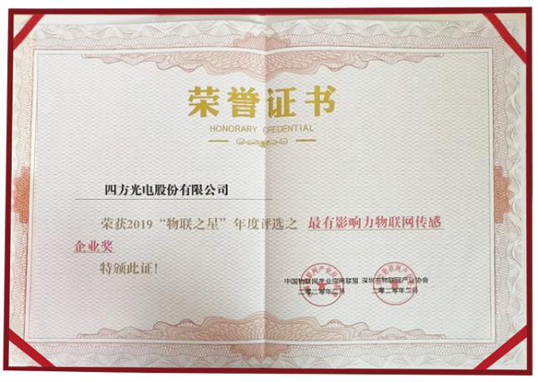 由中國物聯(lián)網(wǎng)產(chǎn)業(yè)應(yīng)用聯(lián)盟、深圳市物聯(lián)網(wǎng)產(chǎn)業(yè)協(xié)會(huì)主辦的2020中國物聯(lián)網(wǎng)CEO千人大會(huì)于2020年7月在深圳召開。在中國物聯(lián)網(wǎng)CEO交流晚宴暨“物聯(lián)之星”頒獎(jiǎng)盛典上,經(jīng)眾多權(quán)威專家評審,四方光電股份有限公司(以下簡稱“四方光電”)憑借在物聯(lián)網(wǎng)領(lǐng)域的影響力,榮獲“物聯(lián)之星”中國最有影響力物聯(lián)網(wǎng)傳感企業(yè)獎(jiǎng)。