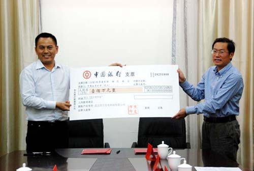 2012年10月10日下午,四方光電股份有限公司向中國地質(zhì)大學(xué)(武漢)捐贈(zèng)儀式在該校迎賓樓3號(hào)會(huì)議室舉行。公司向中國地質(zhì)大學(xué)(武漢)捐贈(zèng)100萬元,設(shè)立“四方獎(jiǎng)學(xué)金”,用于獎(jiǎng)勵(lì)該校在籍的優(yōu)秀本科生。公司董事長、總經(jīng)理熊友輝,中國地質(zhì)大學(xué)(武漢)教育發(fā)展基金會(huì)理事長張錦高,副校長萬清祥出席了儀式。儀式由校教育發(fā)展基金會(huì)秘書長陶繼東主持。
