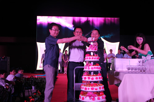 晚上19:30,晚會正式開始,公司總經(jīng)理熊友輝先生、股東代表劉志強(qiáng)先生、員工代表鄔麗婭女士分別上臺致辭,回顧了公司創(chuàng)立十年來的點(diǎn)滴體會和感悟,真摯的話語表達(dá)了對公司的祝福與感恩之情,引起臺下全體員工的共鳴。隨后晚會共頒發(fā)了一個團(tuán)隊(duì)獎和6個個人獎,分別是四方大雁團(tuán)隊(duì)獎、四方守護(hù)者獎、四方老黃牛獎、四方愛因斯坦獎、四方金算盤獎、四方小蜜蜂獎及四方伯樂獎,以表彰在公司發(fā)展過程中做出突出貢獻(xiàn)或優(yōu)異表現(xiàn)的團(tuán)隊(duì)和個人。接下來的T臺產(chǎn)品秀更是別樹一幟,由公司內(nèi)部挑選的六位男女模特手持公司產(chǎn)品展板,伴著時尚動感的背景音樂走上T臺,贏得在場觀眾不斷叫好,拿著相機(jī)拍個不停,在展示公司產(chǎn)品的同時也展示出四方光電員工的多才多藝。在最后伴隨著生日歌的慶生儀式上,公司領(lǐng)導(dǎo)帶領(lǐng)全體員工一起舉杯,共同祝福四方光電生日快樂。豐富多樣的美味自助餐、超大炫麗的LED屏、獨(dú)特的露天T臺、夢幻設(shè)計(jì)的燈光,使得現(xiàn)場沉浸在一片歡樂祥和、浪漫溫馨的氛圍中。