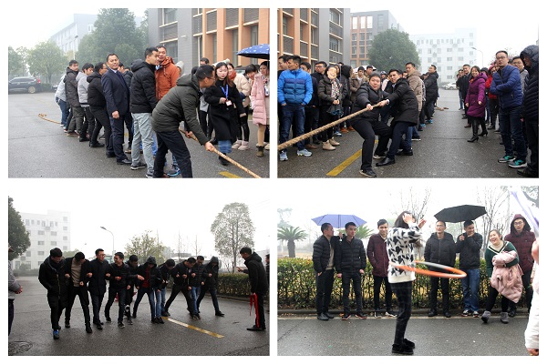 寒冬時節(jié)夾冰雨,鳳凰園內(nèi)鬧新春!年關(guān)將至,晚宴前夕,四方光電的園區(qū)內(nèi)早早就開始了全員參與的慶?;顒?。拔河、趣味闖關(guān)(跳繩、踢毽子、呼啦圈)、十人九足,分組對戰(zhàn)。在公司董事長熊友輝博士及常務(wù)副總經(jīng)理劉志強的帶領(lǐng)下,現(xiàn)場氣氛熱烈,大家同心協(xié)力、團結(jié)奮進,一起為新年博得好彩頭!