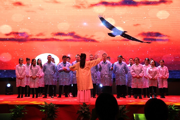 從振奮人心的水鼓舞《中國龍》,到慷慨激昂的大合唱《眾人劃槳開大船》,再到美輪美奐的古典舞《戀人心》,還有老員工們的合唱歌曲《明天會更好》,一場由員工自編自導(dǎo)的表演給到場的領(lǐng)導(dǎo)、嘉賓、全體員工及家屬帶來一場視聽盛宴。
