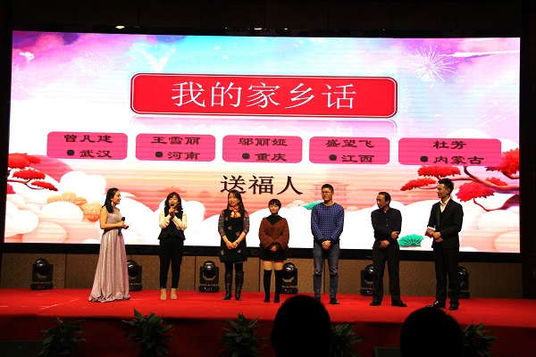 四方大家庭聚集了來自五湖四海的朋友們,家鄉(xiāng)話送祝福環(huán)節(jié),來自江西、內(nèi)蒙古、重慶等地的員工代表上臺為大家用家鄉(xiāng)話送上新春祝福,現(xiàn)場洋溢著一片喜氣洋洋的氛圍。