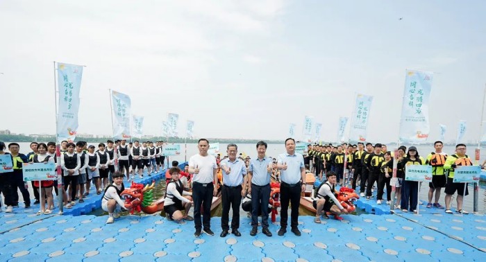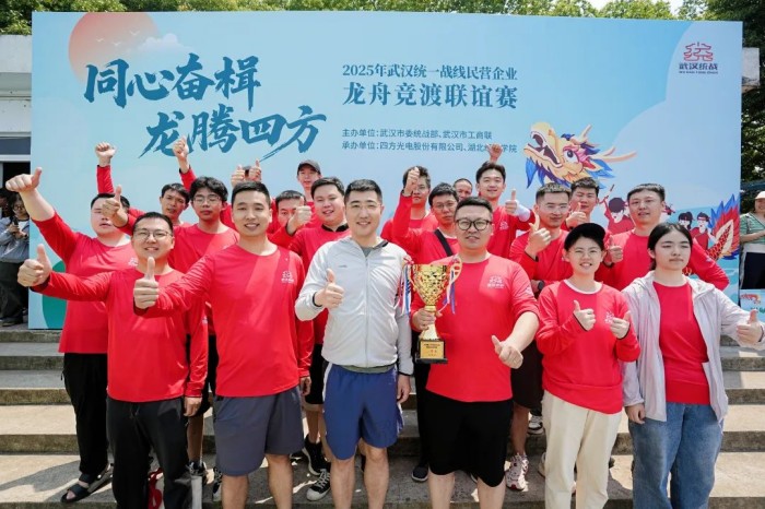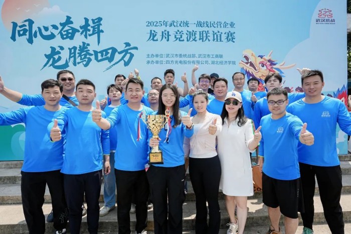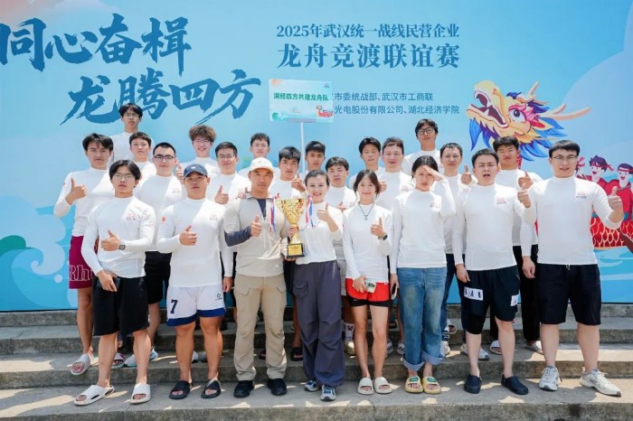 5月25日,以“同心奮楫 龍騰四方”為主題的2025年武漢統(tǒng)一戰(zhàn)線民營(yíng)企業(yè)龍舟競(jìng)渡聯(lián)誼賽在湖北經(jīng)濟(jì)學(xué)院水上運(yùn)動(dòng)碼頭隆重舉行。本次活動(dòng)由武漢市委統(tǒng)戰(zhàn)部、武漢市工商聯(lián)主辦,四方光電股份有限公司、湖北經(jīng)濟(jì)學(xué)院聯(lián)合承辦。武漢市委常委、市委統(tǒng)戰(zhàn)部部長(zhǎng)胡勇政,武漢市委統(tǒng)戰(zhàn)部副部長(zhǎng)、市工商聯(lián)黨組書記程春生,湖北經(jīng)濟(jì)學(xué)院黨委副書記、副校長(zhǎng)付宏教授,江夏經(jīng)濟(jì)開發(fā)區(qū)黨工委書記、管委會(huì)主任盧鵬,四方光電股份有限公司董事長(zhǎng)熊友輝博士等領(lǐng)導(dǎo)嘉賓出席活動(dòng),全市168名民營(yíng)企業(yè)代表組成的8支隊(duì)伍參賽。