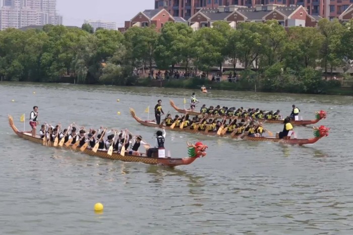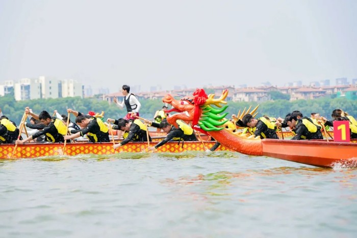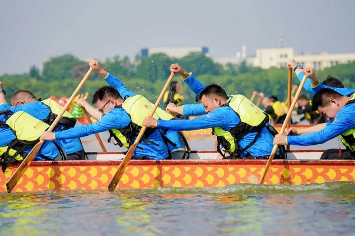 本次比賽采用300米直道競(jìng)速賽制,湖經(jīng)四方共建龍舟隊(duì)、四方光電龍舟隊(duì)、三期“頭雁”學(xué)員龍舟隊(duì)、武漢市高新技術(shù)產(chǎn)業(yè)協(xié)會(huì)龍舟隊(duì)、長(zhǎng)盈通龍舟隊(duì)、中步擎天和普迪真空龍舟隊(duì)、利楚商服龍舟隊(duì)、中科創(chuàng)新龍舟隊(duì)8支隊(duì)伍在碧波蕩漾的楊橋湖上展開激烈爭(zhēng)奪。