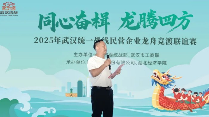 開幕式上,武漢鑫弘凱交通科技有限公司創(chuàng)始人、“頭雁”班三期學(xué)員班長(zhǎng)朱凱代表參賽企業(yè)家發(fā)言。他感謝武漢市委統(tǒng)戰(zhàn)部對(duì)民營(yíng)企業(yè)的大力支持,特別是通過“頭雁”領(lǐng)軍人才訓(xùn)練營(yíng)等舉措,助力企業(yè)實(shí)現(xiàn)創(chuàng)新與合作的雙提升。朱凱表示,龍舟競(jìng)渡既體現(xiàn)了“百舸爭(zhēng)流”的競(jìng)爭(zhēng)意識(shí),更彰顯了“眾人劃槳開大船”的協(xié)作精神,這正是新時(shí)代民營(yíng)企業(yè)家精神的生動(dòng)寫照。