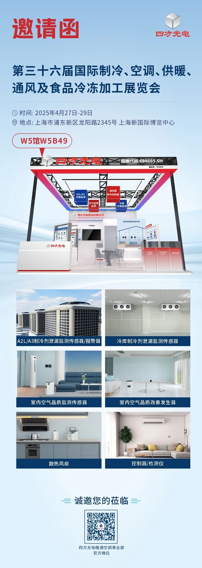 本次展會(huì),四方光電將圍繞制冷、空調(diào)、供暖、通風(fēng)等領(lǐng)域提供環(huán)境舒適性應(yīng)用、A2L/A3制冷劑安全應(yīng)用、散熱風(fēng)扇、控制器/檢測(cè)儀等多個(gè)解決方案,并攜多個(gè)新品于W5B49展位驚艷亮相。