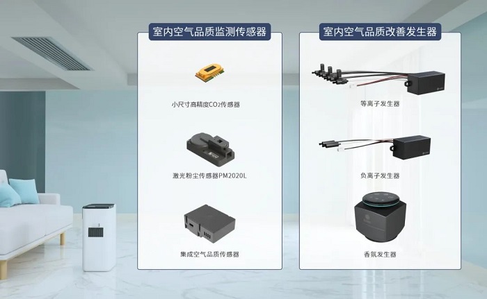 在室內(nèi)空氣品質(zhì)監(jiān)測(cè)領(lǐng)域,四方光電推出了小尺寸高精度二氧化碳傳感器、激光粉塵傳感器PM2020L和多合一集成空氣品質(zhì)傳感器AM2020等新產(chǎn)品,滿足終端客戶對(duì)空氣質(zhì)量監(jiān)測(cè)的多元化需求。在此基礎(chǔ)上,四方光電進(jìn)一步拓展業(yè)務(wù)范圍,投入空氣品質(zhì)改善領(lǐng)域,將已經(jīng)在汽車(chē)上大批量使用的等、負(fù)離子發(fā)生器和香氛發(fā)生器引入空調(diào)、冰箱等家電設(shè)備,實(shí)現(xiàn)高效空氣凈化,為用戶打造舒適健康的家居環(huán)境。