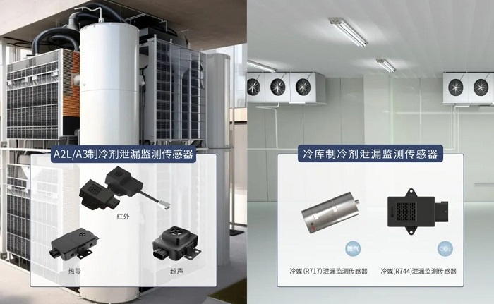 四方光電基于綜合的傳感器技術(shù)平臺(tái)和技術(shù)創(chuàng)新,推出了一系列冷媒泄漏監(jiān)測(cè)傳感器,涵蓋紅外、熱導(dǎo)、超聲三種技術(shù)路線,適用于各種A2L/A3冷媒的監(jiān)測(cè)(如R454B、R454C、R1234YF、R1234ZE、R290等)。針對(duì)冷庫(kù)制冷劑泄漏引發(fā)的安全問(wèn)題,自主研發(fā)了冷媒(R717)和冷媒(R744)泄漏監(jiān)測(cè)傳感器,可以精準(zhǔn)監(jiān)測(cè)氨氣和二氧化碳?xì)怏w泄漏,具有抗干擾性強(qiáng)、檢測(cè)精度高、響應(yīng)快、壽命長(zhǎng)等優(yōu)勢(shì),有效防范爆炸等事故的發(fā)生,保障冷庫(kù)制冷系統(tǒng)的安全運(yùn)行。