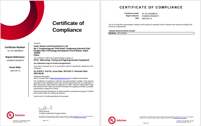 近期,四方光電塵埃粒子計數(shù)器 OPC-6303UL 通過了 UL 61010-1 的測試,獲得 UL 的正式認(rèn)可。這不僅是對產(chǎn)品質(zhì)量和安全性的認(rèn)可,也為其在國際市場的推廣提供了有力支持。